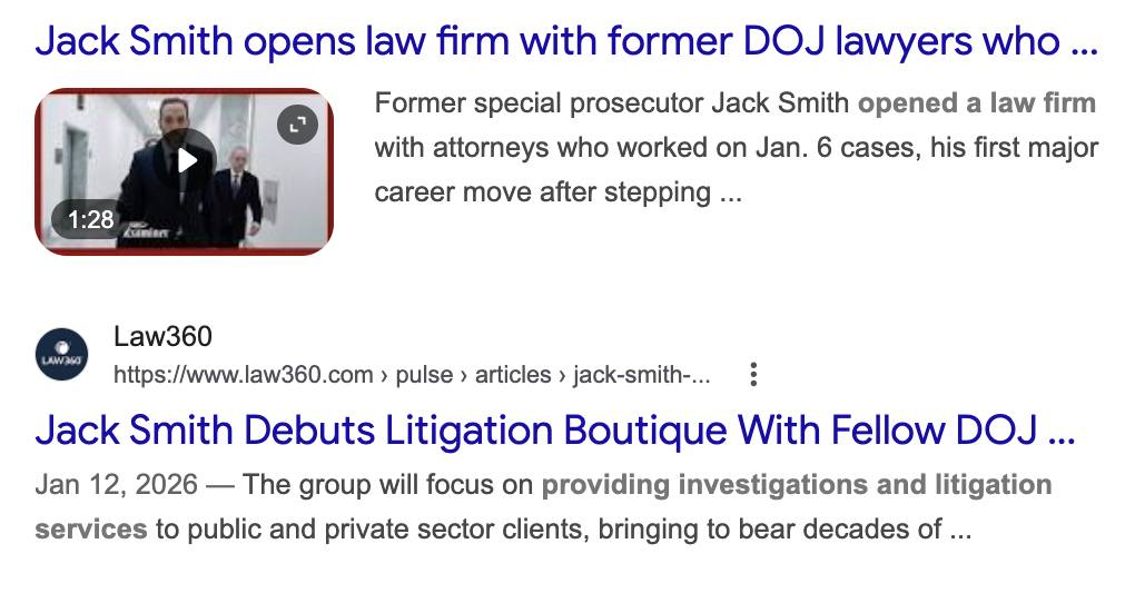 Jack Smith has also opened his own law firm with ex-DOJ colleagues.