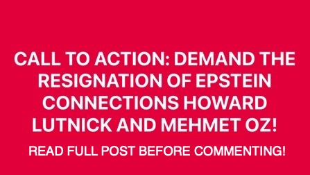 CALL TO ACTION! DEMAND THE RESIGNATIONS OF HOWARD LUTNICK AND MEHMET OZ, BOTH OF WHOM ARE IN THE EPSTEIN FILES!