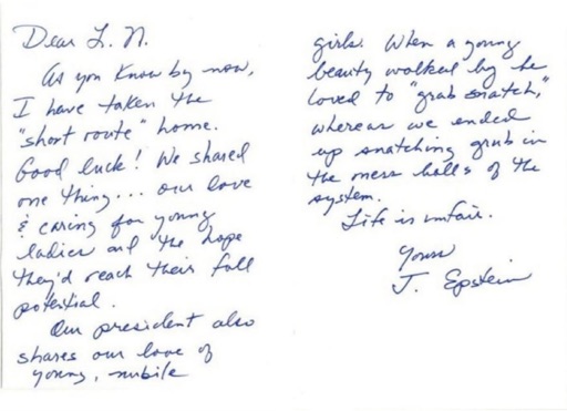 There was a woman on the news today that said that this is not Epstein’s writing, and that Epstein was a horrible speller, according to some of the women who were hurt by him.