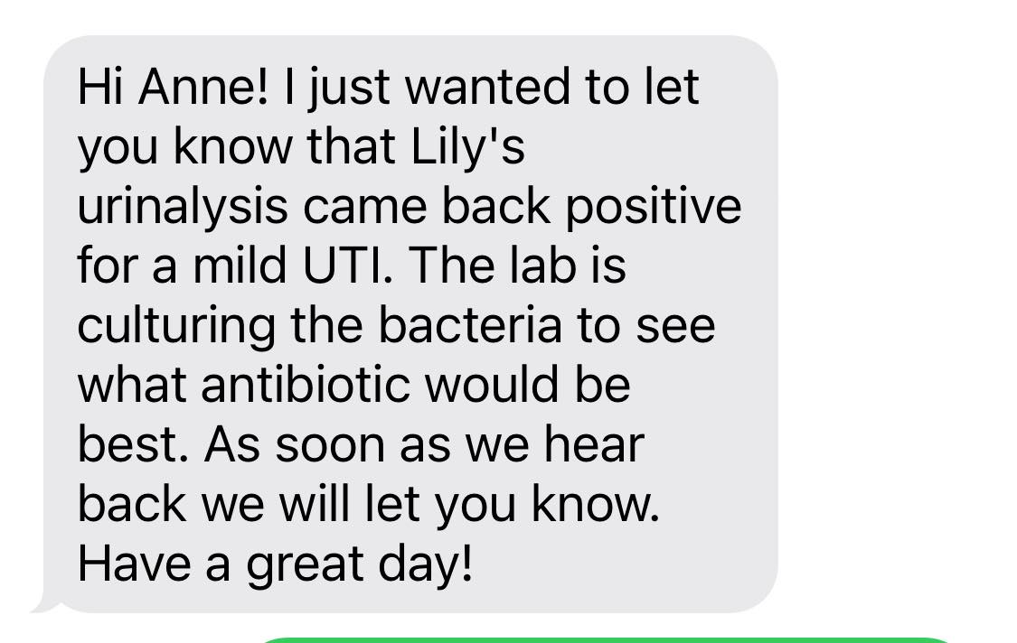 I absolutely LOVE my house call vet! They came on Monday so Lily could have her annual checkup (they take her out to their fully appointed van, and even though I hand her off to the doctor outdoors and I am masked they still happily mask for me because they understand my condition and that I can’t take any risks at all), and while she was in there she stress peed and the doctor noticed it smelled a bit off, and so they collected it as a sample and sent it off to the lab. That’s already reason enough to love them, but then here they are going the extra mile, plus text messaging me (which I also love). So yes, I really love them!
