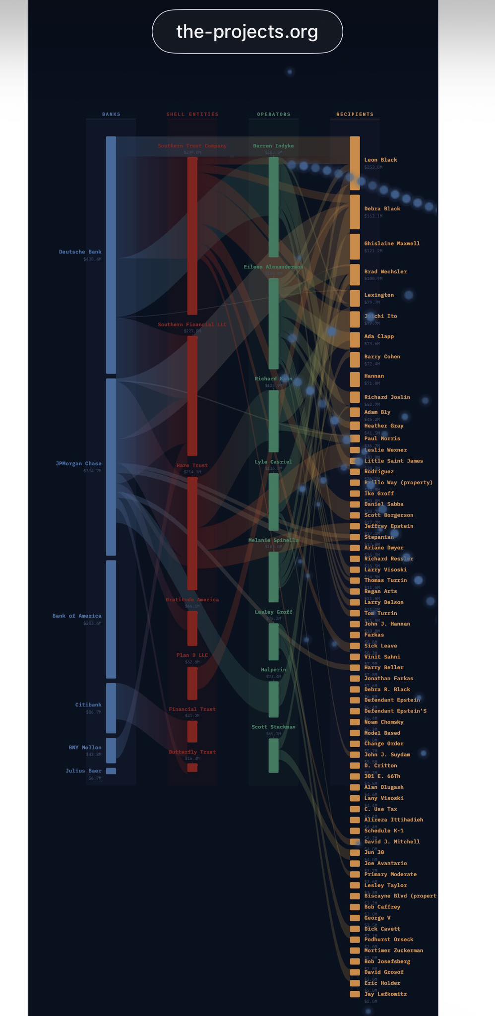 First and foremost, I cannot take credit for this, I am involved, but the incredible Randall is the person who put it together, first on GitHub, and now as a standalone site. His superlative programming skills, along with his deep background in finance, made him the perfect person to create this asset.  This resource connects all of the dots between all of the various financial transactions in which Epstein was involved, to whom the money flowed, through where it flowed, the shell companies, the individuals, everything, including foreign organizations, individuals, and ties. And it is all sourced directly from all of the documents from the DOJ, the House, court filings, and other sources. What’s more, every analysis includes the direct links to the documents that are the source of that analysis.  That means every analysis is sourced directly from a Bates-stamped or EFTA-numbered document.