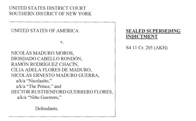 The narrative starts out “For over 25 years, leaders of Venezuela have abused their positions of public trust and corrupted once-legitimate institutions to import tons of cocaine into the United States.”