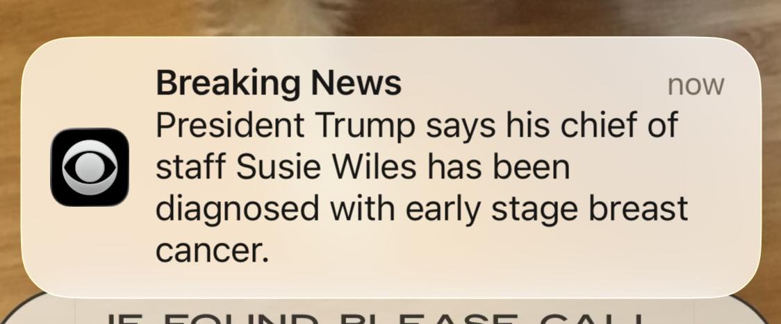 I’m truly sorry that Ms. Wiles has been diagnosed with breast cancer, but can we talk for a minute about the massive cancer that his administration is spreading throughout our country?