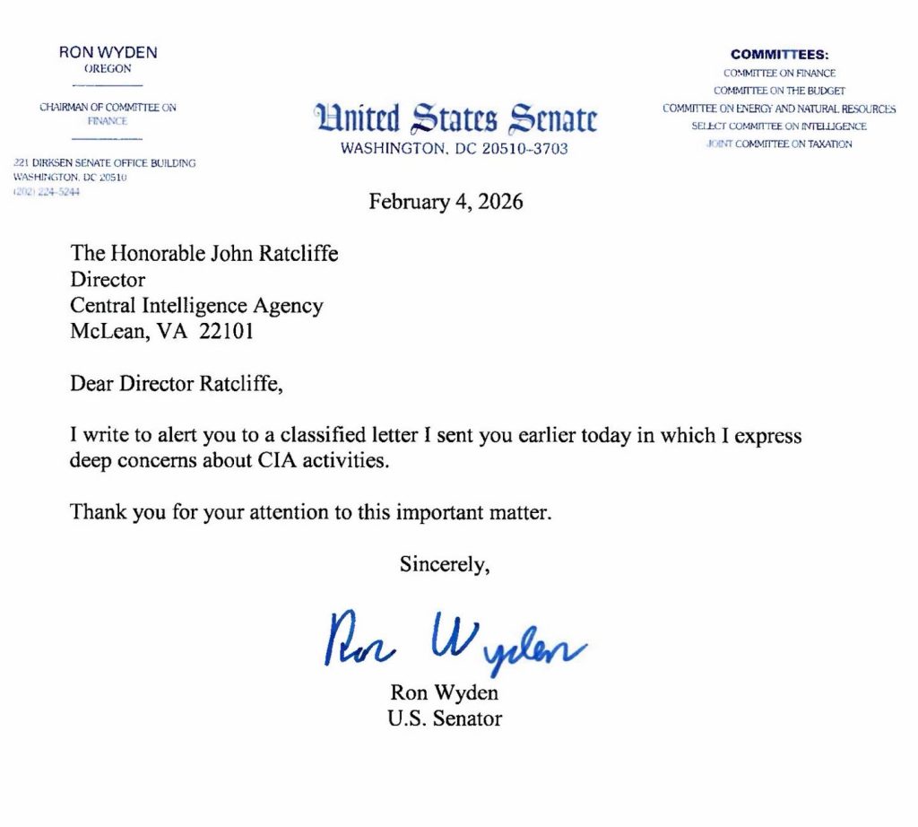 Interesting that a senator felt the need to send a classified warning about intelligence activities.Source narcolepticnerdRelated postsContinuing the Reduction of the Federal BureaucracyMarch 20, 2025S. 3938 (ES) – An Act To designate the community-based outpatient clinic of the Department of Veterans Affairs in Lynchburg, Virginia, as the Private First Class Desmond T. Doss VA Clinic.December 21, 2025Alt National park Service Public AnnouncementJanuary 31, 2026Previous postTO ALL OF OUR INTREPID EPSTEIN SLEUTHS: Remember, if it isn’t authenticated wit…Next postH.R.5658