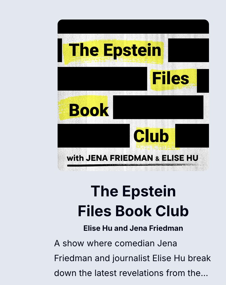 The fabulous Elise Hu and Jena Friedman are *awesome* hosts, and we covered a lot of ground, including what *are* the Epstein files, and what has to happen to bring people to justice.