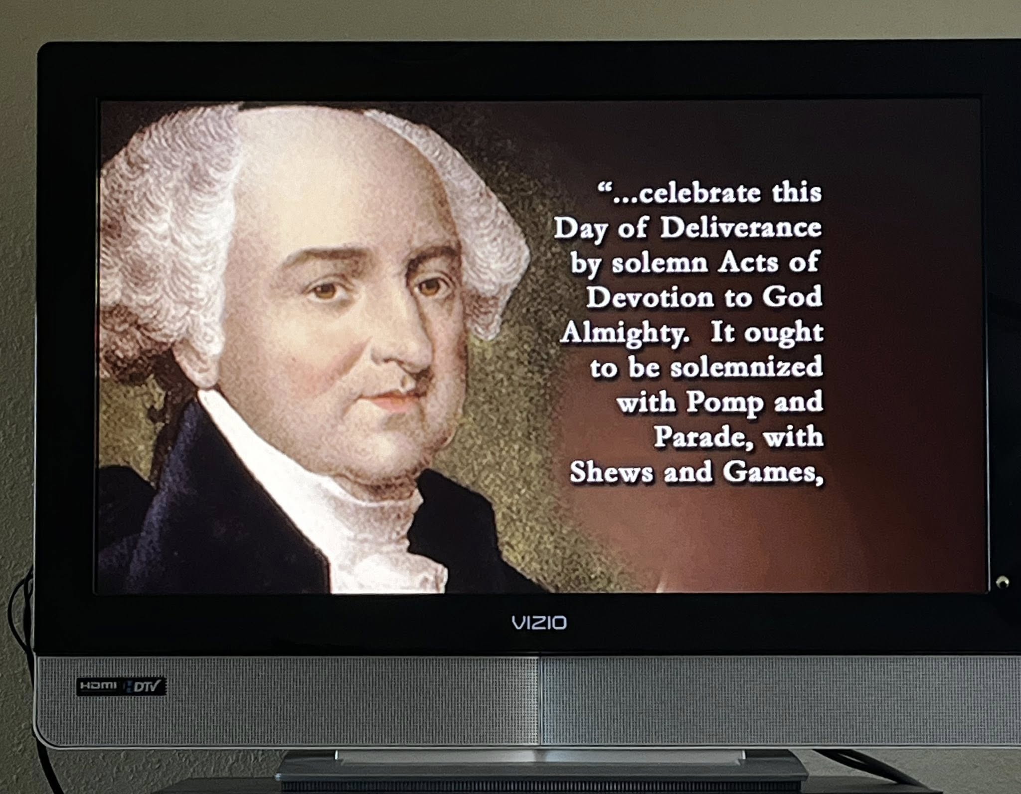 The motion to declare independence was actually passed on July 2, 1776, and on that same day John Adams wrote a letter including the language in the screenshots. (After passage of the motion to declare independence there was some tweaking made to the language in the document, and the final edit was adopted on July 4. So our actual Independence Day is July 2. When you celebrate on July 4th you are actually celebrating the draft of the document finally being done, something about which any author or lawyer will tell you is something to celebrate, but it isn’t what most people think we are celebrating.)