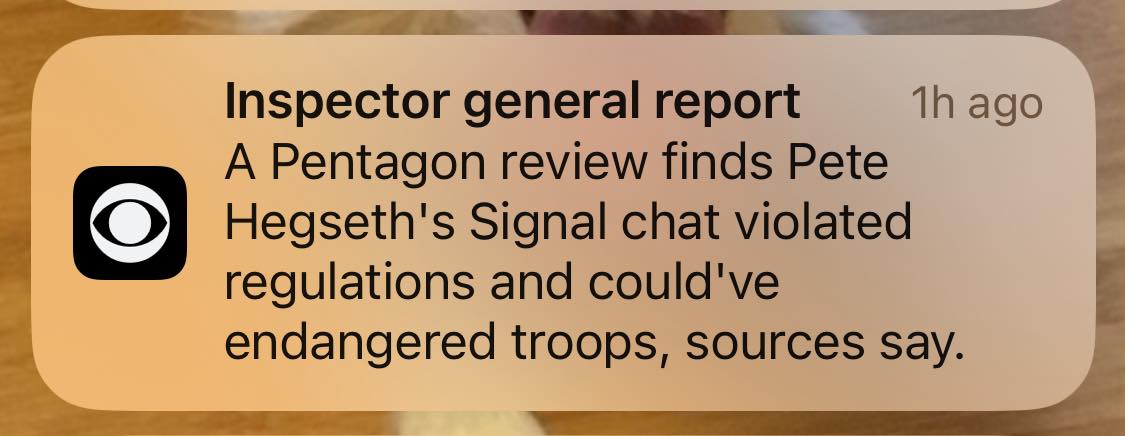 The individuals who spoke to CBS News said the report found the former Fox News host-turned-defense-secretary violated Defense Department policies when he used his personal device for official business to transmit sensitive U.S. military information to other top Trump officials and the editor in chief of The Atlantic magazine. The two sources requested anonymity because they were not authorized to discuss the unreleased report.”