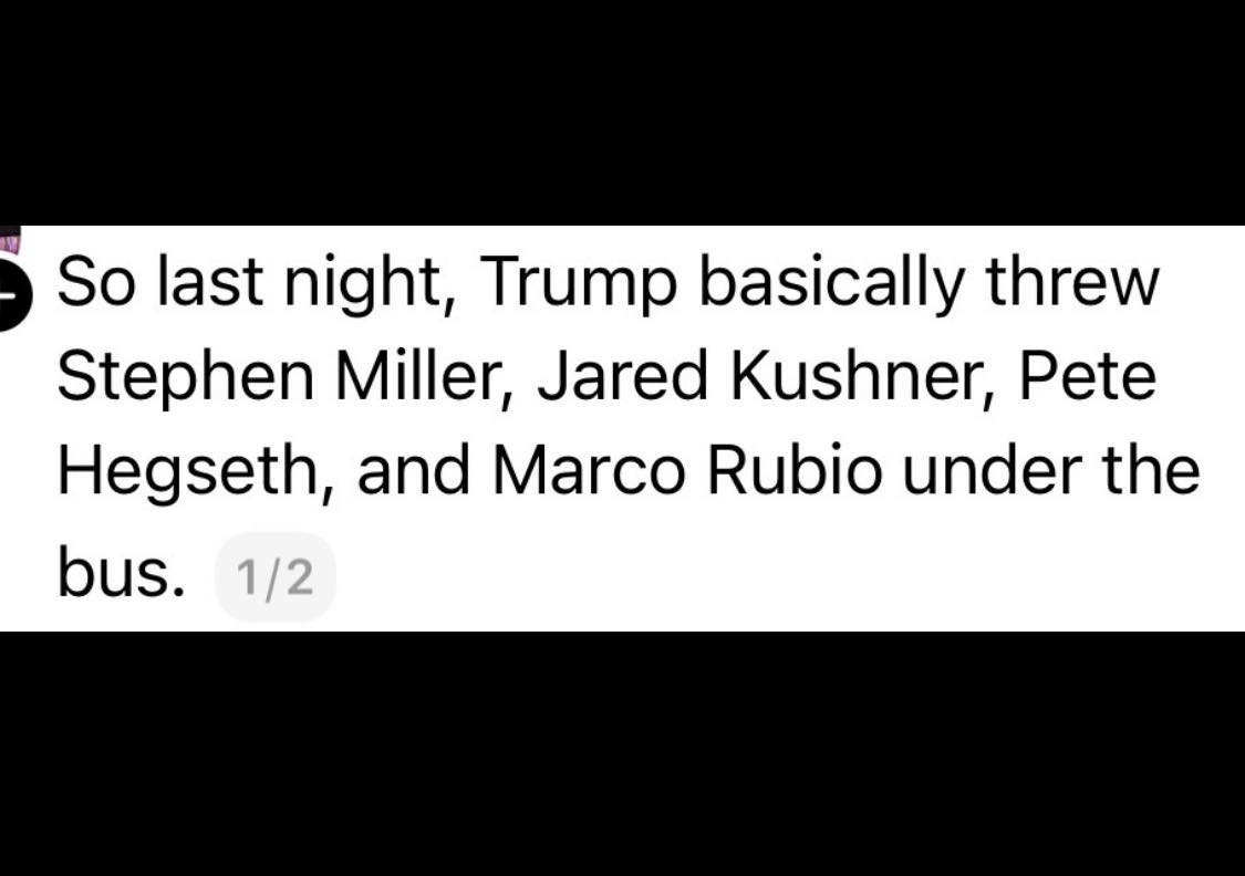 UPDATE: So people are saying that Trump said that he started the Iran war because Steve, Jared, and Marco told him to. But I can find NO credible authoritative source that has him saying that. Only social media stuff and non-credible, non-authoritative “news” sources. Anybody have a link to a credible news source that actually has him saying that?