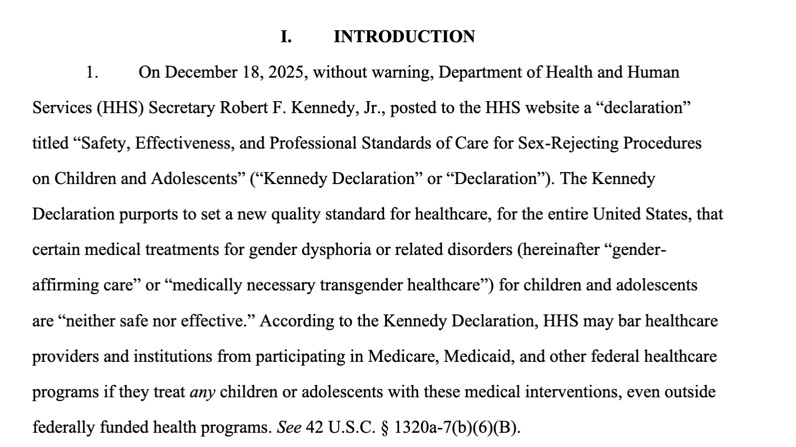The basics of this lawsuit are that in December Kennedy issued and posted a 12-page declaration against gender affirming care. (The Declaration, along with the lawsuit Complaint, the States’ motion for summary judgement, HHS/Kennedy’s response, and the text of the minute order ordering summary judgement, are all included for Notes from the Front members).