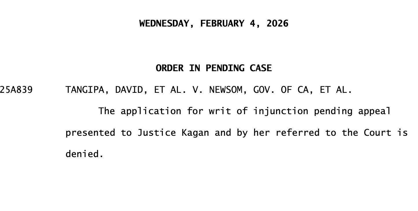 YES!!!!! SUPREME COURT *DENIES* REQUEST FOR INJUNCTION AGAINST CALIFORNIA’S NEW REDISTRICTING MAP!!